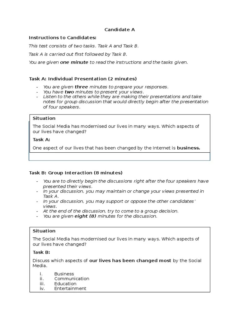 Muet Test Example : Muet Past Year Papers Collection. One of the questions that came out for this end of the year muet speaking exam is (submitted candidate) how to. There are five parts to the test.